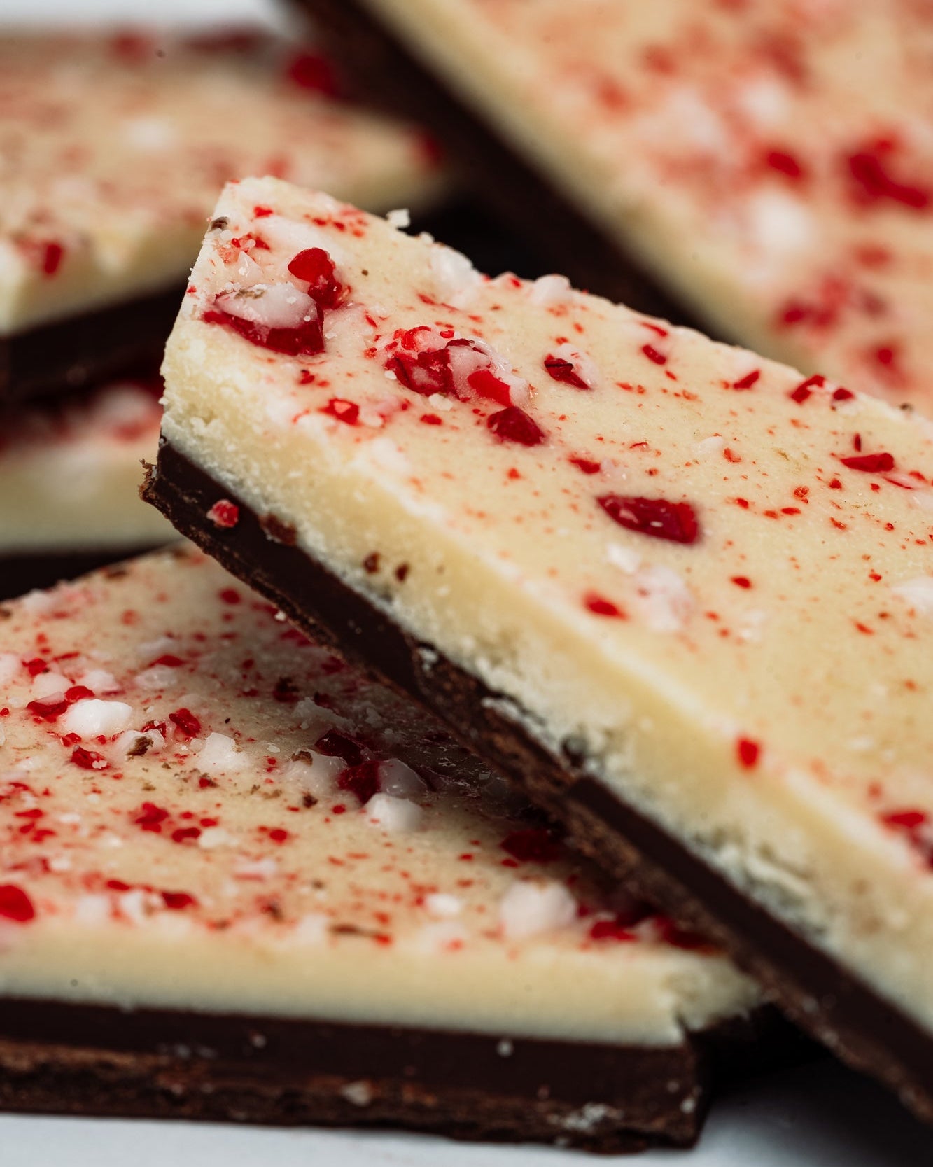 Peppermint Bark – layers of rich dark and creamy white chocolate topped with crushed peppermint for the perfect holiday crunch